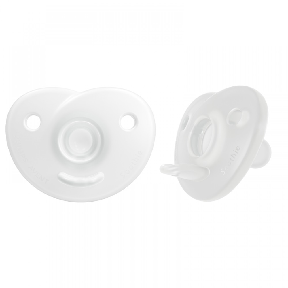 Chupeta Soothie Avent, 100% em silicone médico, escudo flexível, tornando mais confortável para o bebê, formato do bico que estimula e supri a sucção do bebê, tem uma abertura no escudo que a permite a mãe coloque o dedinho mindinho para massagear a boca do bebê. Indicado para recém nascidos.
