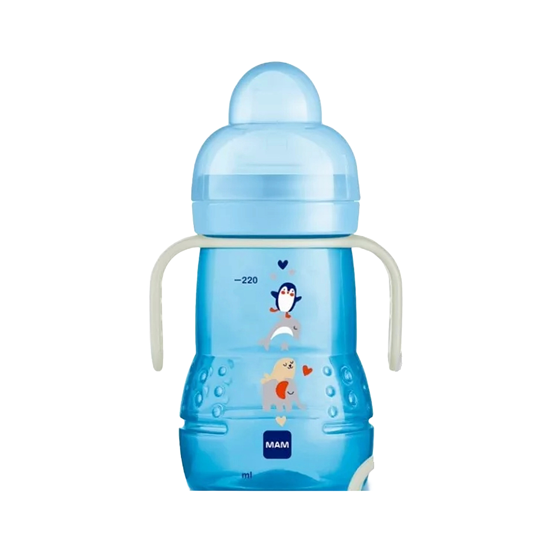 O Copo de Treinamento Trainer da MAM possui um design perfeito para o aprendizado e a prática, facilitando a transição da mamadeira para o copo convencional porque a sensação é similar.