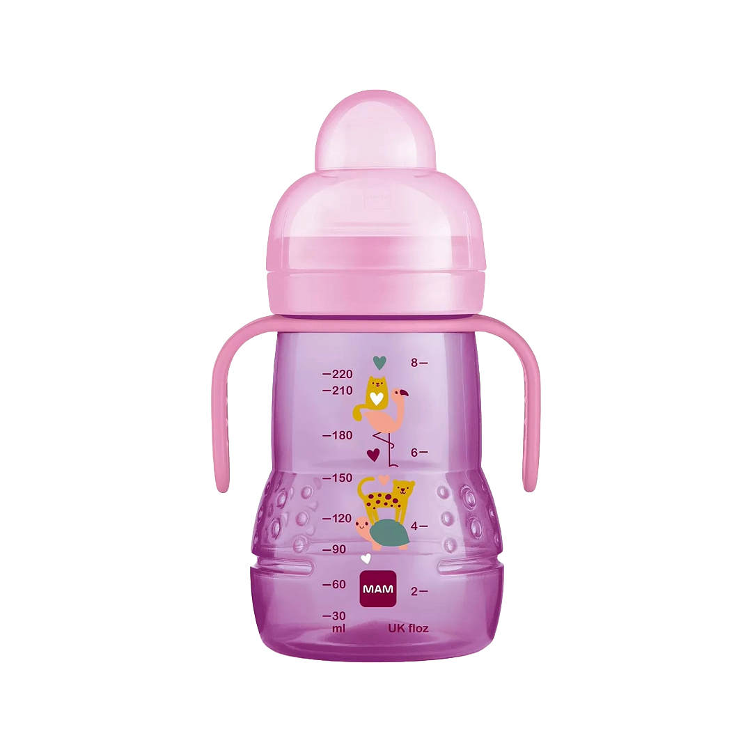 O Copo de Treinamento Trainer da MAM possui um design perfeito para o aprendizado e a prática, facilitando a transição da mamadeira para o copo convencional porque a sensação é similar.