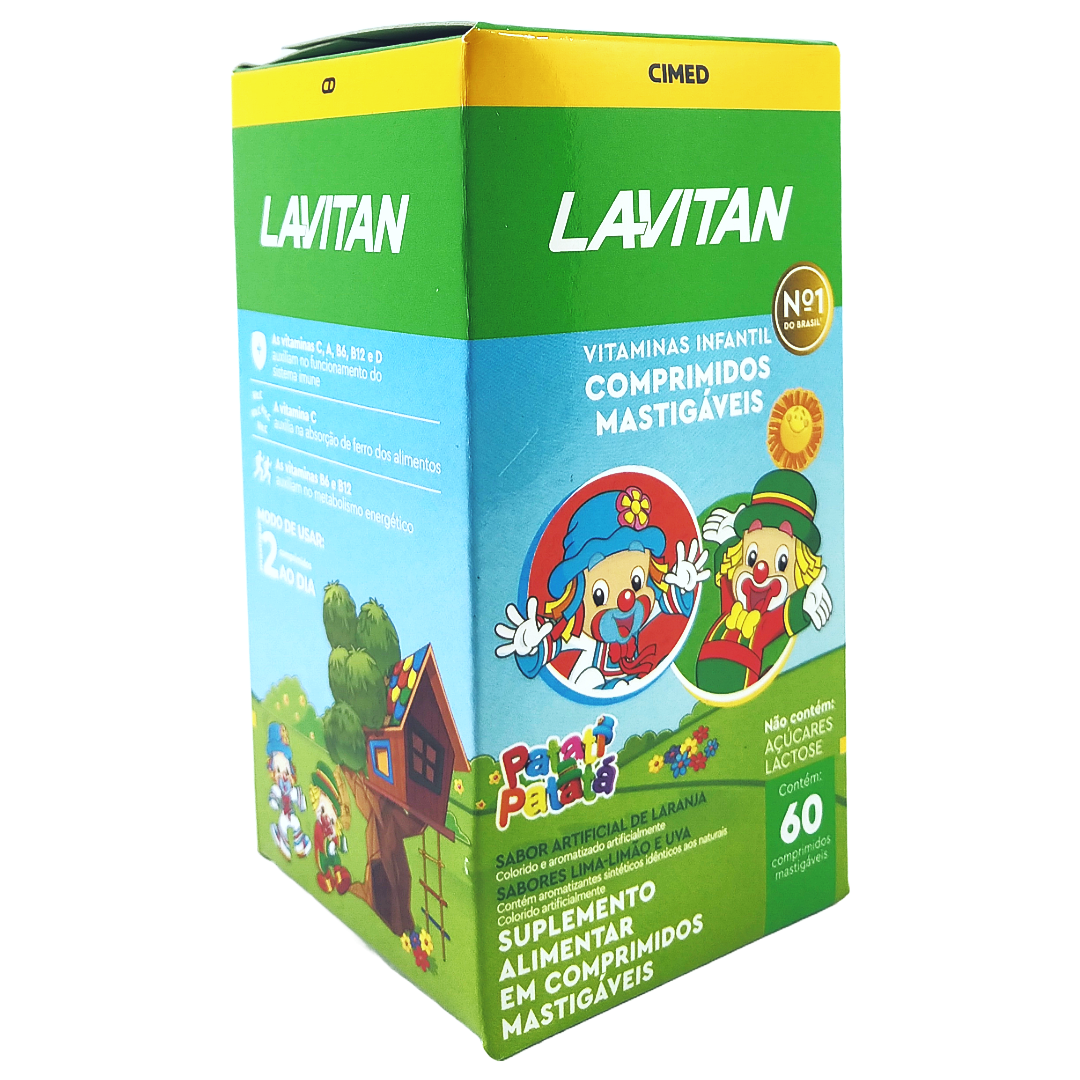 INGREDIENTES: ácido ascórbico, acetato de vitamina A, cloridrato de tiamina, cloridrato de piridoxina, cianocobalamina, colecalciferol, veículo Sorbitol, estabilizante celulose microcristalina, antiumectante dióxido de silício, aroma artificial de Tutti Frutti, , edulcorantes sucralose, acessulfame k, corantes artificiais vermelho 40 e eritrosina.