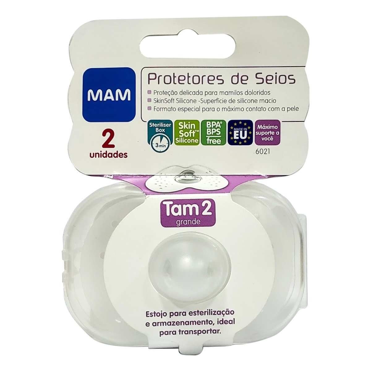 - Protetor de Seios Mam, o seu formato permite sentir o cheiro e ter contato com a pele da mãe.